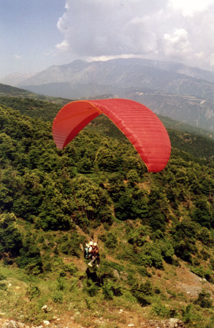 Every year we have paragliding schools visiting and flying with us mainly from Germany, England, Austria, Switzerland and individual flyers from all over the world. We offer more than 15 different take off and landing points in the region of Mount Olympus.